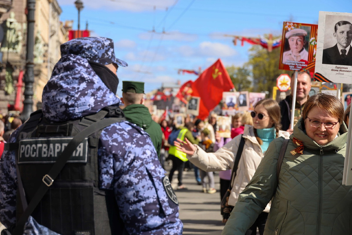 9 мая в Санкт-Петербурге сотрудники и военнослужащие Главного управления Росгвардии по г.Санкт-Петербургу и Ленинградской области, а также военнослужащие Северо-Западного округа войск национальной гвардии РФ совместно с другими правоохранителями обеспечили охрану общественного порядка и общественной безопасности во время проведения массовых мероприятий, посвящённых 80-летию Победы советского народа в Великой Отечественной войне.