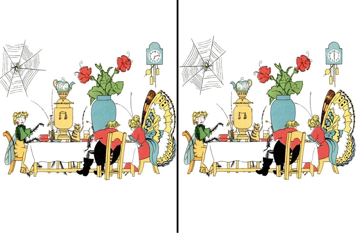 Развлеки ребенка и проверь себя: игра "Найди 5 отличий" по "Мухе-Цокотухе" К. Чуковского