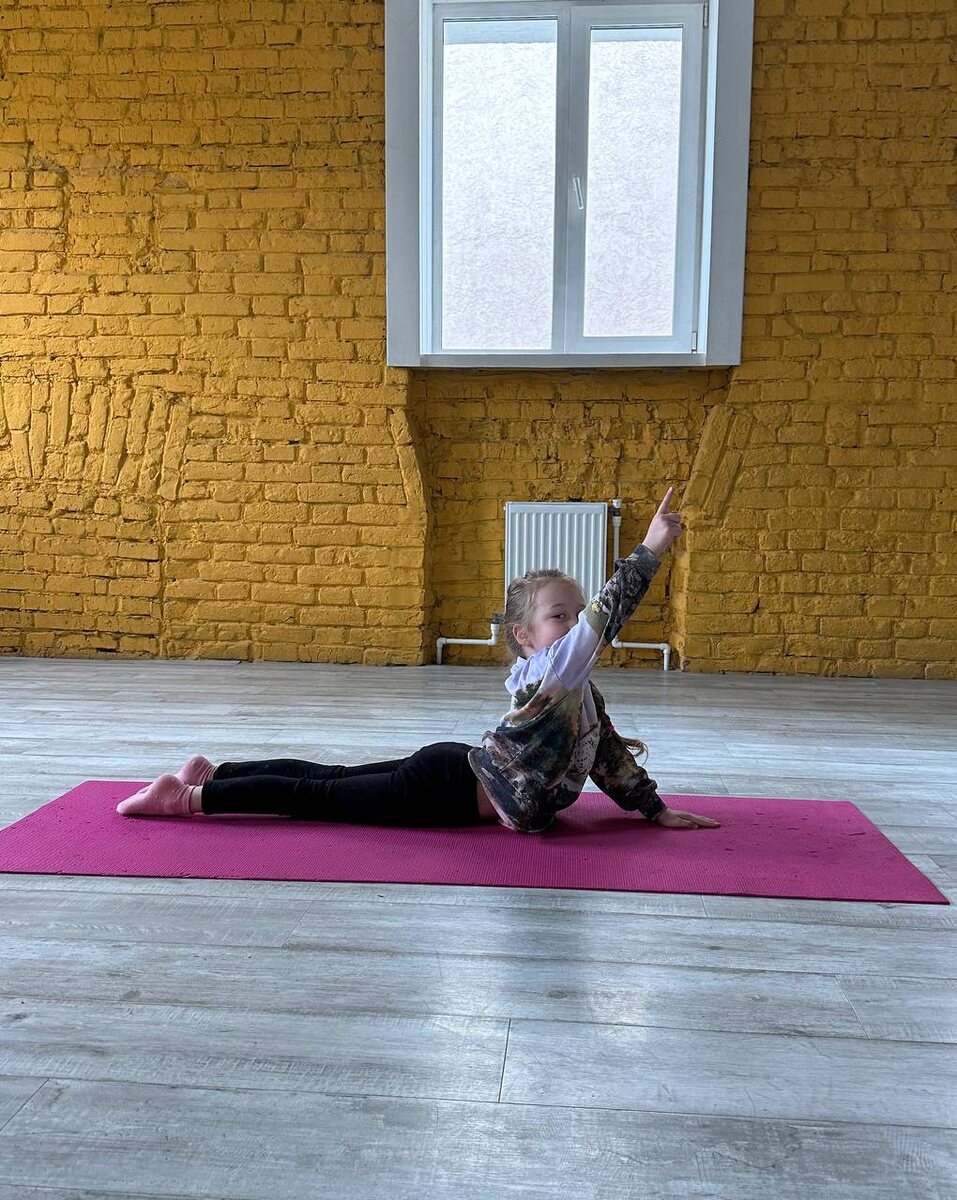 Раджа Бхуджангасана и моя Морковка. Ну посмотрите на этот пальчик 🥰 Такая изящная, нежная девичья ручка. А этот гордый довольный взгляд! Янимагу 😇 Посмотрите внимательно на бедра. Видите, как старательно Морковка заворачивает их друг к другу, напрягая в каждой мышце? - Так и только так можно учиться делать позу королевской кобры. Только на напряженно работающих ногах. Если ноги будут просто лежать на ковре, вы повредите спину и мягкие ткани таза. Да. Представляете, можно убить тазовое дно неверной техникой закачивания спины и пресса и поясничными прогибами.