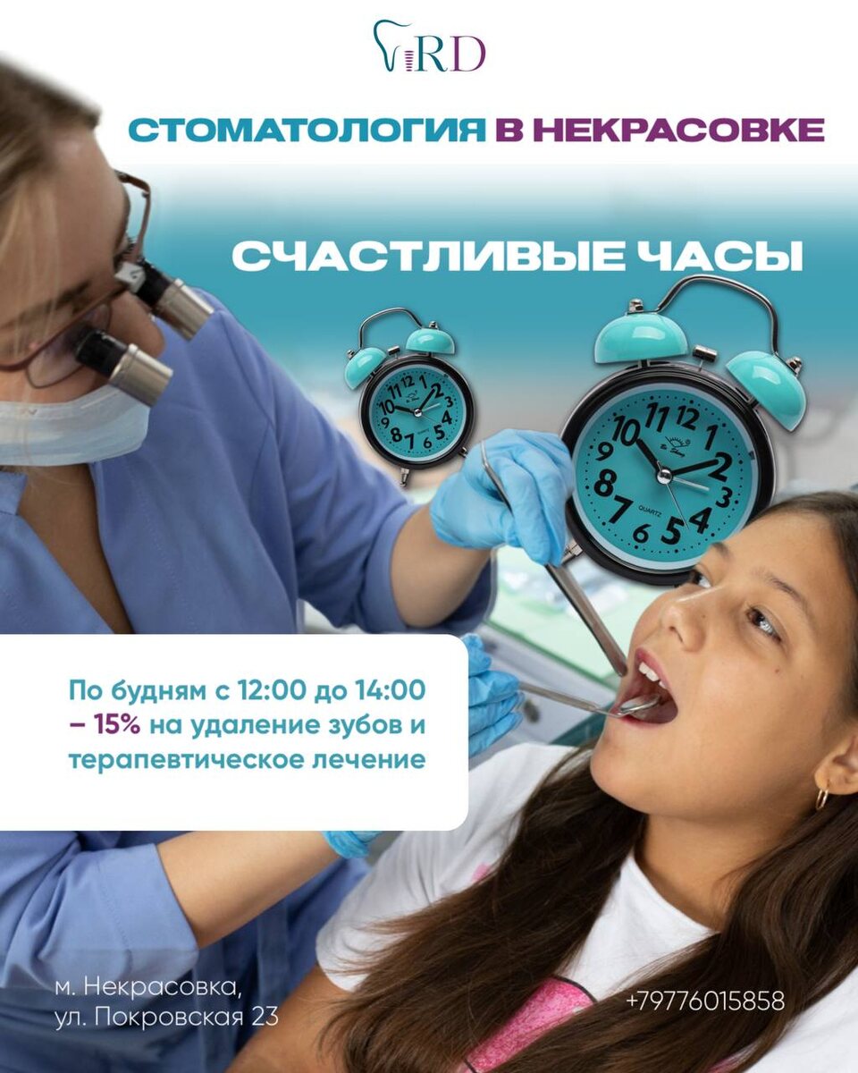 💥Счастливые часы: по будням с 12:00 до 14:00 у нас действует специальное предложение — 15% скидка на удаление зубов и терапевтическое лечение! 🎉