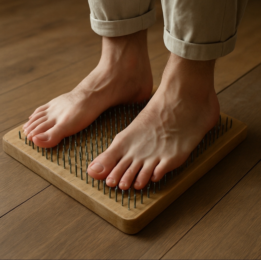 С недавнего времени я решил попробовать стояние на гвоздях. Не ради моды, не из стремления доказать что-то себе или другим — просто почувствовал внутренний отклик. Казалось бы, всего полминуты — максимум 60 секунд. Что в этом такого? Но оказалось, за этим стоит целый мир ощущений, реакций, инсайтов и тишины. Первые попытки были... скажем, интересными. Телу больно, ум сопротивляется, начинается внутренний диалог: «Зачем ты это делаешь?», «Ты ненормальный?», «Давай уже слезай». Всё кричит: «Хватит!» Но именно в этот момент и начинается самое интересное. Ты стоишь. Смотришь внутрь. Замечаешь, как разум ищет выход, придумывает оправдания. И если не следовать за этим, а остаться — наступает удивительное: ты вдруг становишься просто ощущением, просто присутствием. Точка боли становится точкой внимания. Стояние на гвоздях — это не про гвозди. Это про встречу с собой. Тело говорит: «Мне больно». Ум говорит: «Мне страшно». А ты просто наблюдаешь. И чем дольше стоишь — тем тише всё становится