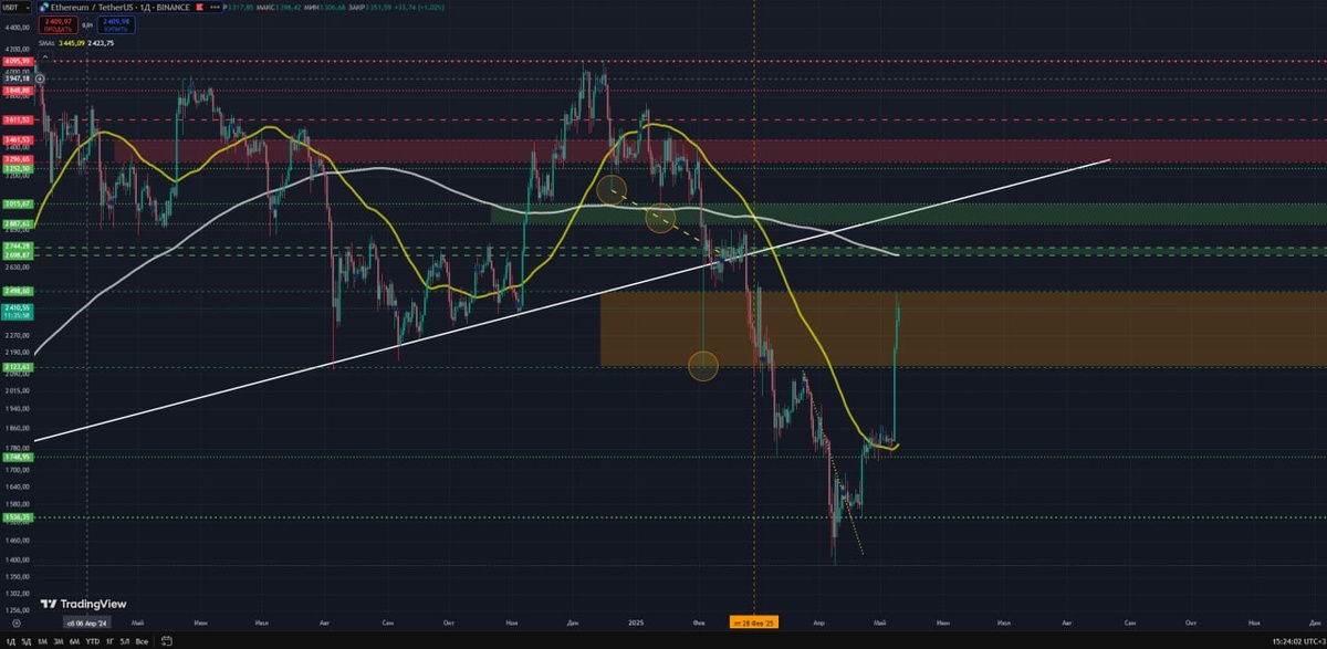 Сигнала на разворот еще не загорелся, квартальная цель в районе 2800$.