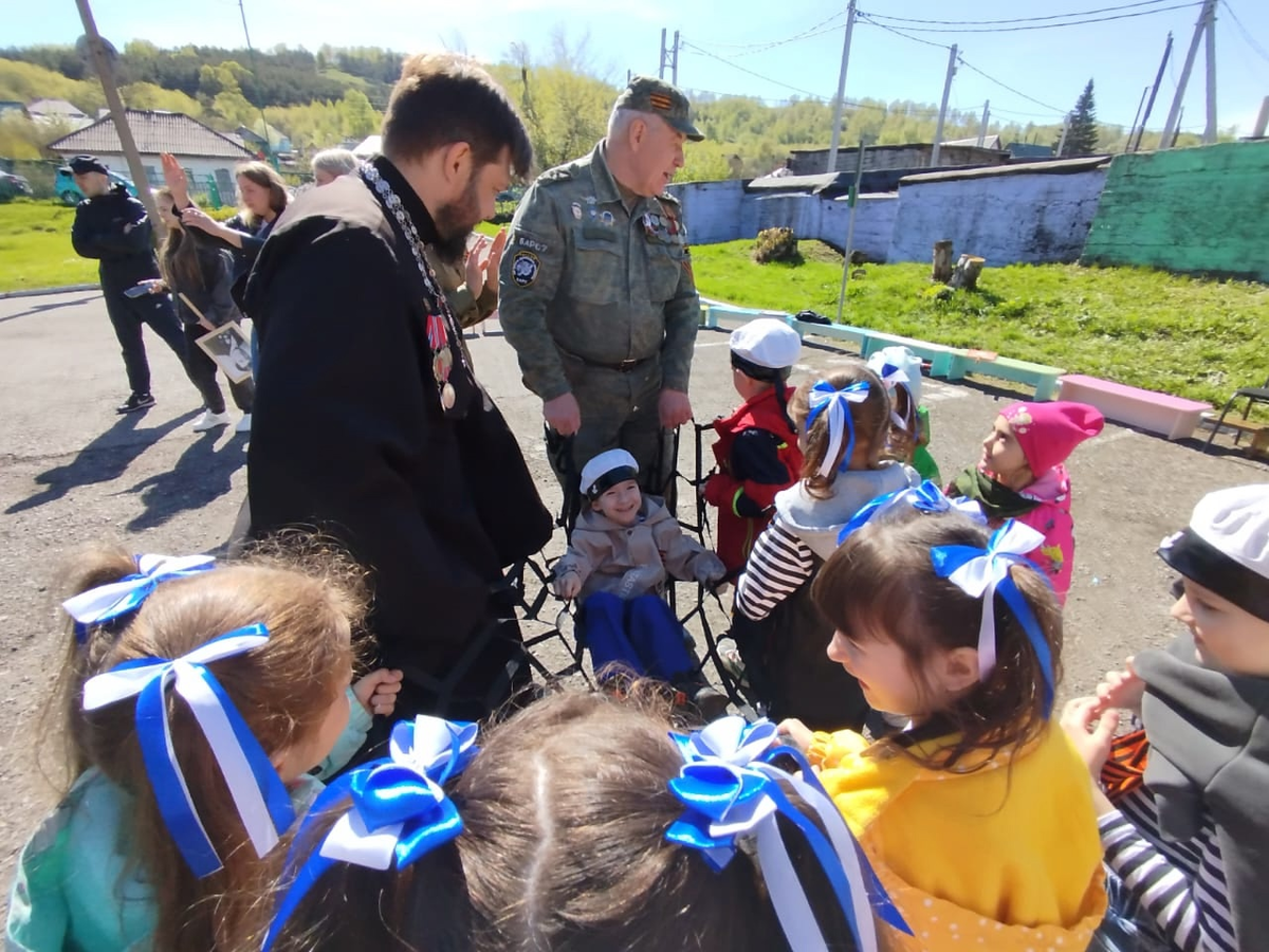 Мероприятие посетили участник СВО, капитан Владимир Михайлович Смирнов (позывной «Мирный») и руководитель отдела по делам молодежи Новокузнецкой епархии протоиерей Андрей Рузанов. Гости поздравили ребят с Днем Победы и побеседовали с ними о значении этого важного для нашего Отечества праздника.