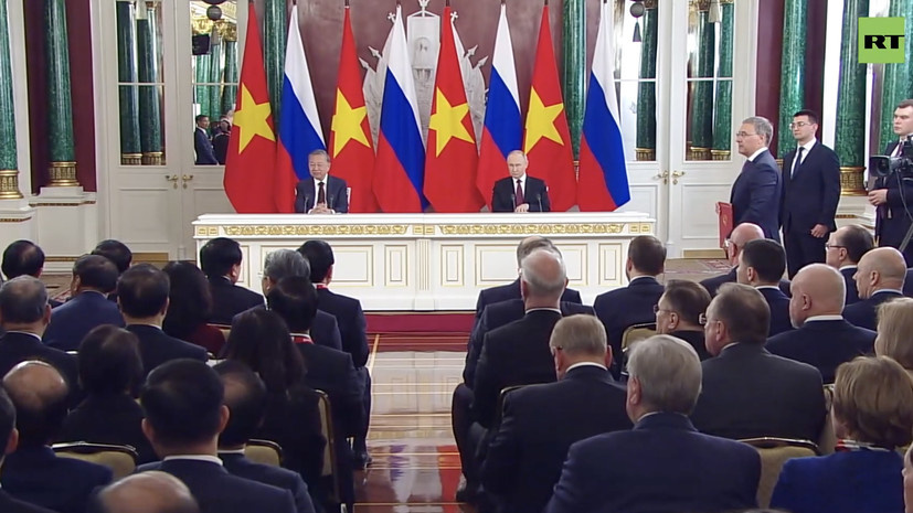 В субботу, 10 мая, в Кремле прошли российско-вьетнамские переговоры. По их итогам стороны был подписан ряд совместных документов, а Владимир Путин и генсек ЦК Компартии Вьетнама То Лам выступили с заявлениями для СМИ. RT вёл прямую трансляцию.