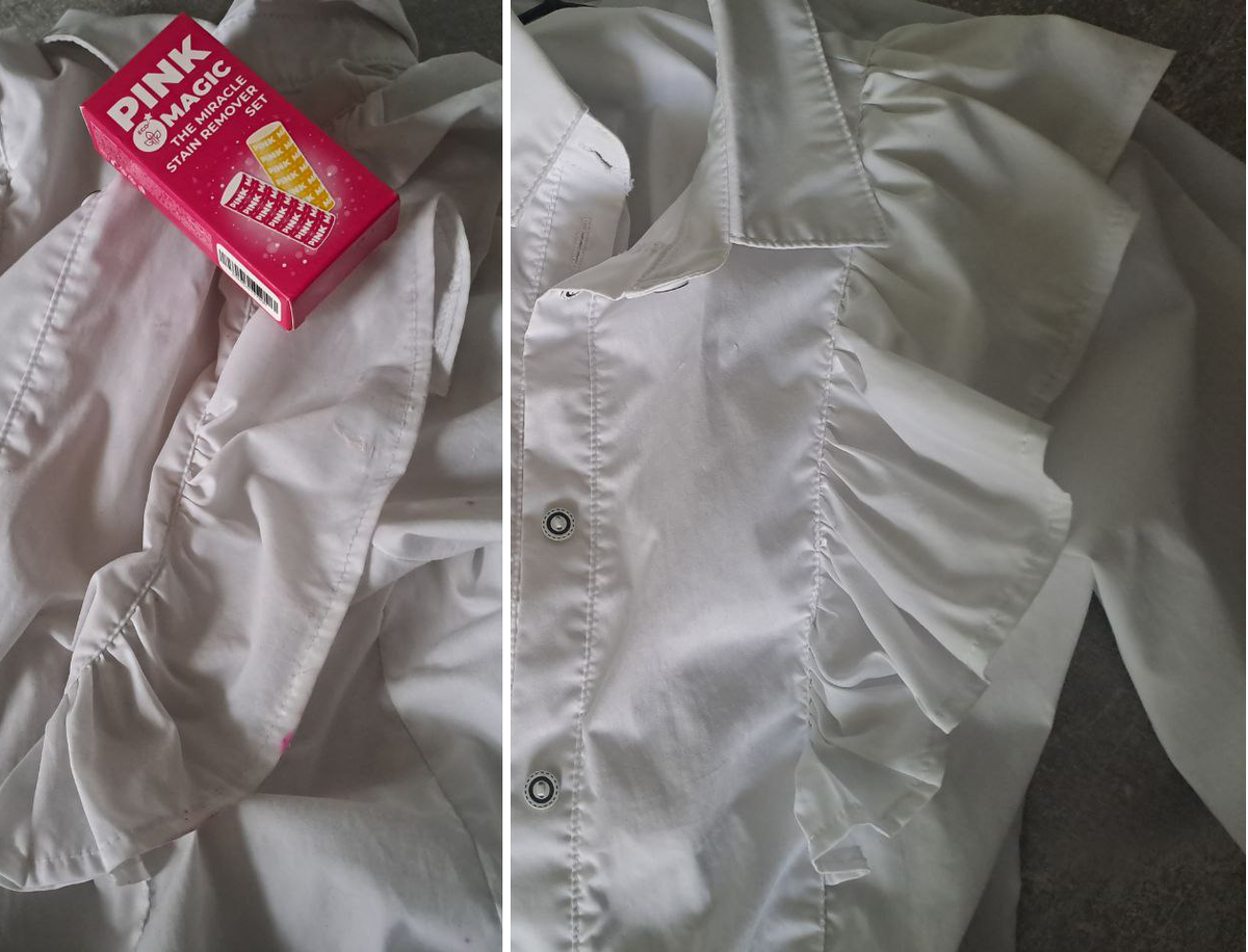 Не знаю почему, но до 5 класса дети постоянно уханькивают белые блузки и рубахи. Им говоришь: закатывай рукава, когда рисуешь на ИЗО. Нет! Пока с альбома не соберут всю акварель, не успокоятся. Всем привет 🙂 Когда я пыталась начать носить белое, я поняла, что носить его так же темное не получится. Нужно постоянно следить за тем, чтобы ничего не задевать, ни к чему не прикасаться, ходить аккуратно. У меня всегда дома разные средства, но бывает так, что есть пятно, а ничего не помогает. Поэтому главное не отстирать, а не замарать. Но детям этого не объяснишь. С тех пор как они стали ходить в рисовальный кружок с пн по чт, блузки и рубахи стали постоянно учуханными. Зачастую помогает справляться с пятнами кислородный пятновыводящий карандаш PINK MAGIC 🙂 Купила на МП однажды просто "на пробу", а теперь пишу пост, потому что не могу не поделиться! В наборе — два стика: