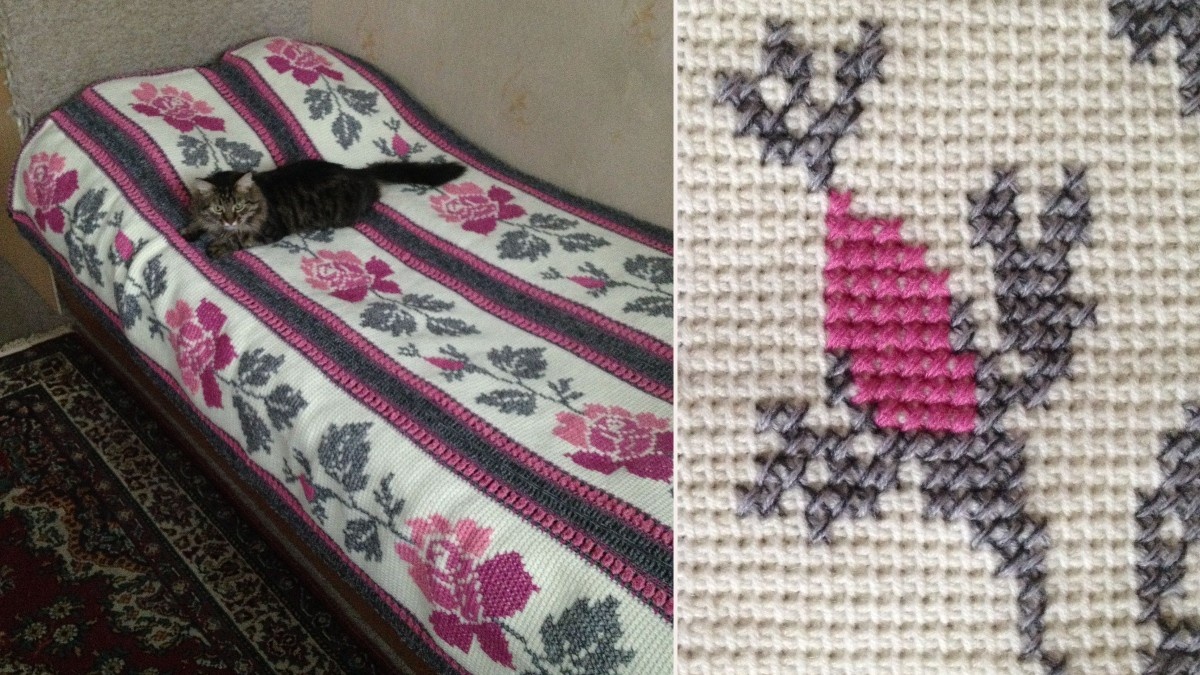 Вяжем крючком и вышиваем крестом – покрывало с розами