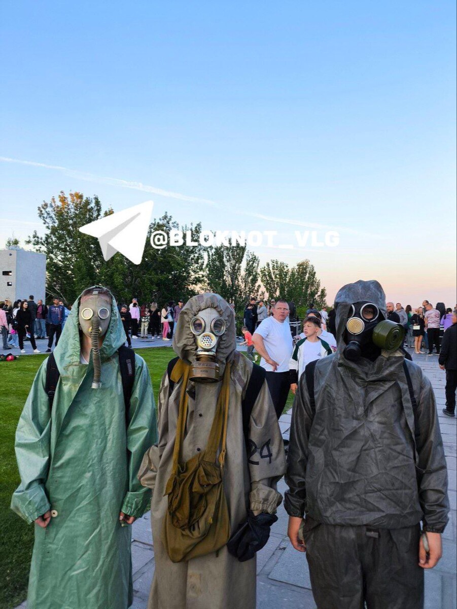В центре Волгограда накануне, 9 Мая, на Мамаевом кургане люди заметили компанию в противогазах. Молодые парни рассказали "Блокноту", для чего затеяли этот перфоманс. Пятеро парней прошлись по городу-герою в День Победы в общевойсковом защитном комплекте, чтобы посмотреть на реакцию похожих. По словам ребят, люди отнеслись весьма положительно к их поступку. более того, некоторые даже просили сфотографироваться с ними. – Нам было интересно потолкаться с прохожими и туристами. Вещи использовался еще во времена ВОВ. Противогазы купили на сайте объявлений, мы давно интересуемся вещами гражданской обороны. Мы в этот день были и на Центральной набережной. Юноши утверждают, что у них не возникло проблем на досмотре у рамок металлоискателей – их без проблем пропустили на Мамаев курган. – Нам говорили только, что мы дождя боимся, – вспоминают ребята. Местные жители не стали осуждать подобную инициативу парней, а наоборот, поддержали эту затею: – Прикольный перфоманс, надеюсь, не ловили осуждающи