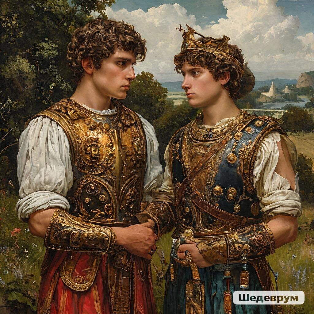 Сегодня история про Кастора и Полидевка, которые были сводными братьями, воинами, спортсменами и великими героями Греции. Ребята были Диоскурами, то есть сыновьями Зевса. Но, что интересно, это мать у них была общая – красавица Леда, дочь царя Этолии и жена царя Спарты, а отцы – разные. Кастор был рожден в земном браке Леды и царя Спарты Тиндарея, а Полидевк в браке Леды и Зевса (Зевс, как мы помним, ни одной красивой женщины не пропустил). То есть, Кастор и Полидевк были сводными братьями, но любили друг друга, как родные. Именно за эту их искреннюю братскую любовь Зевс и наградил братьев, сделав их созвездием Близнецов. А как было дело, я расскажу. У Кастора и Полидевка было два двоюродных брата, с которыми они не поделили стадо коров, а потом еще и невест братьев украли. Из-за этого стада и невест они так переругались, что стали биться не на жизнь, а насмерть. В этой схватке Кастора ранили (а он был смертным), но Полидевк не готов был смириться со смертью брата и попросил своего отц