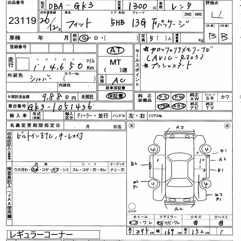 Как выглядит аукционный лист на японское авто?