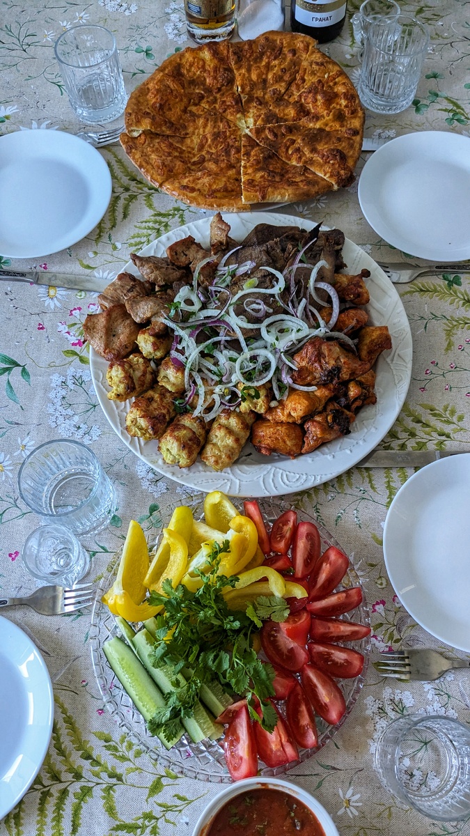 Домой заказали шашлык из ресторана "Мангал-Сити" и накрыли праздничный стол