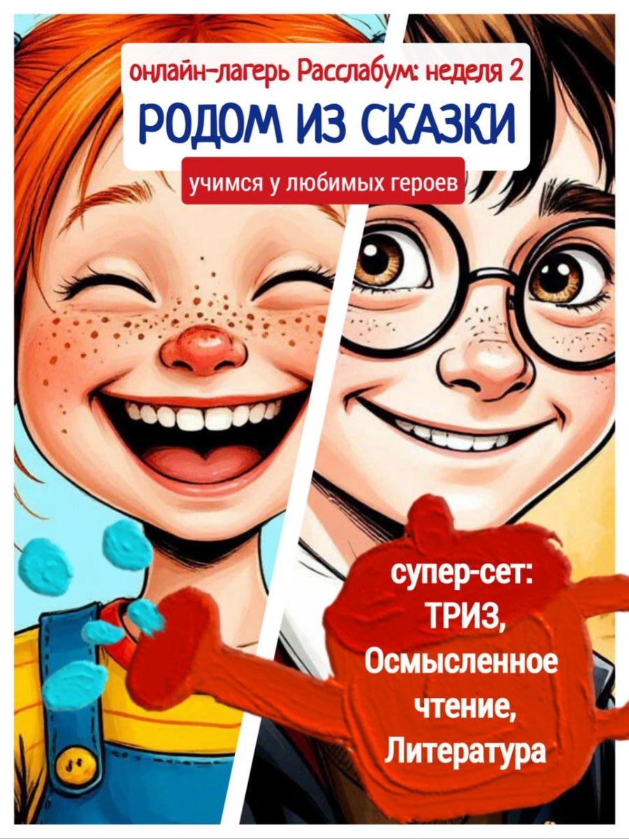 Откуда берется креативность? Учеными доказано, что это не что-то врождённое, а качество, которое можно развивать и тренировать, как и прочие навыки. 👍👍👍 Мы подтверждаем это, потому что постоянно это делаем с нашими учениками. ТРИЗ (теория решения изобретательскиз задач) - специальная методика развития творческого мышления - наш повседневный инструмент. С которым знакомим в рамках онлайн-лагеря 🔤🔤🔤🔤🔤🔤🔤🔤🔤🔤 🌟 "Родом из сказки" — ещё одна неделя, на этот раз с литературным приключением! ☝️ Здесь мы учимся изобретательскому и креативному мышлению у героев любимых книг! Этот уникальный курс на стыке ТРИЗ, литературы и осмысленного чтения — отличный способ раскрыть таланты и развить важные навыки у детей! 📚 Что происходит на курсе? Каждый день мы знакомимся с одним произведением и его героем: читаем отрывки, обсуждаем их смысл и погружаемся в приключения. 👩🎓 Главные герои курса: 🟢Пеппи Длинный Чулок 🟢Гарри Поттер, Гулливер, 🟢Том Сойер 🟢и Робинзон Крузо. А с ними -