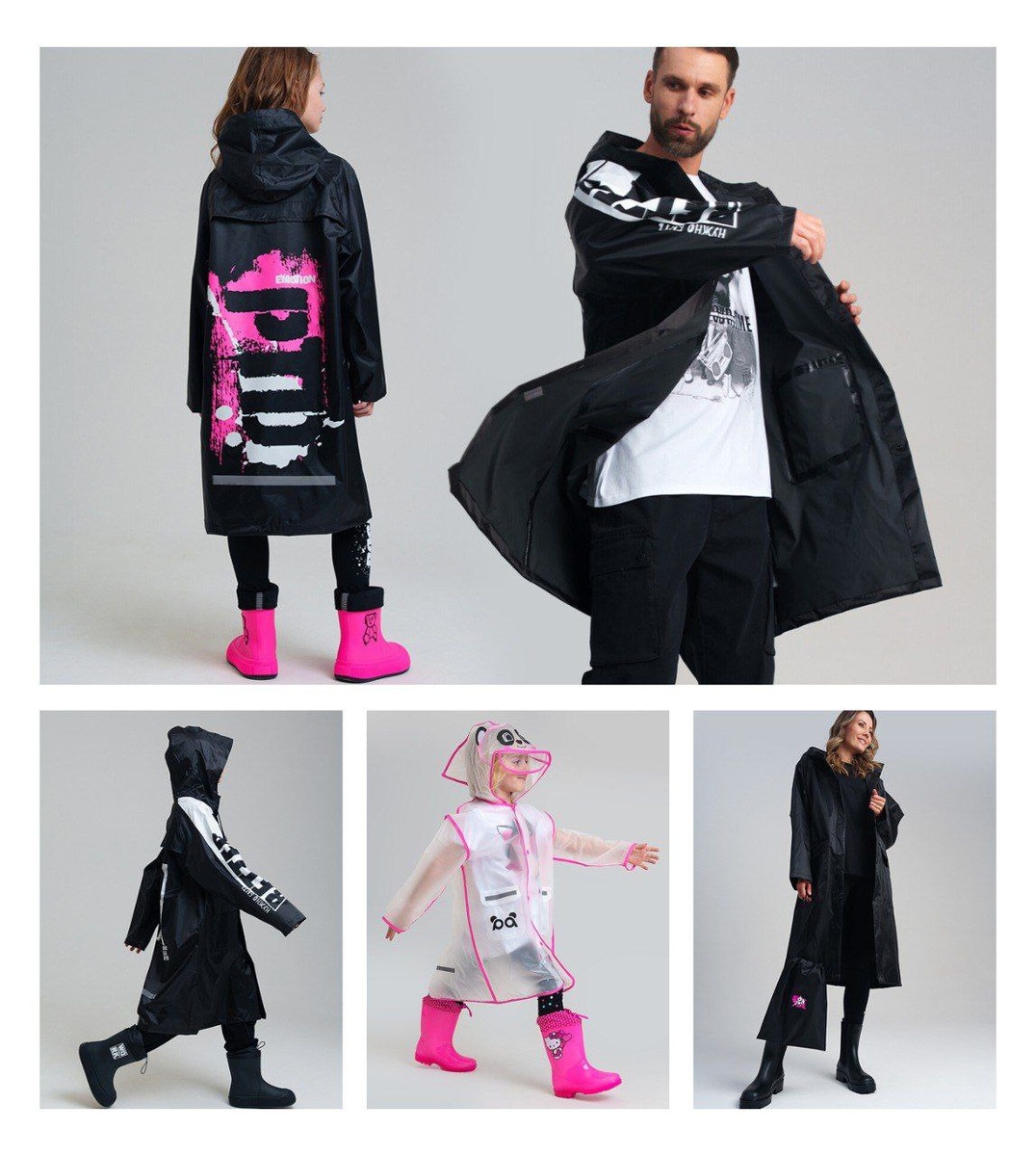 Гуляем даже под дождем в премиальных дождевиках из материала микрооксфорд с Touch-эффектом. Модели для детей и взрослых идеально сочетаются между собой, создавая стильный Family look.