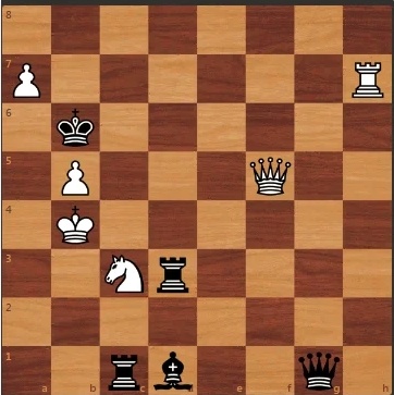 У черных ладья за две белые пешки. Черные готовы поставить мат в несколько ходов. Белые начинают и ставят мат в 1 ход. Более сложная задача тут >> Решение, подсказка, в галерее.