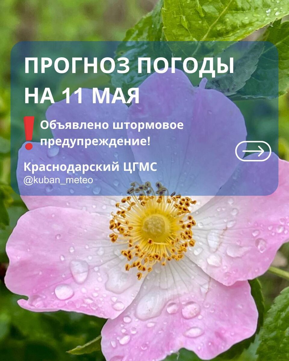 🌦️Прогноз погоды в Краснодарском крае на 11 мая. Актуальный прогноз с 18:00 10 мая до 18:00 11 мая по всемирному скоординированному времени (UTC). Ветер: северный, 4-9 м/с Осадки: ночью дождь, утром и днём без существенных осадков Температура: ночью +9…+11, днём +15…+17 Прогноз от @kuban_meteo