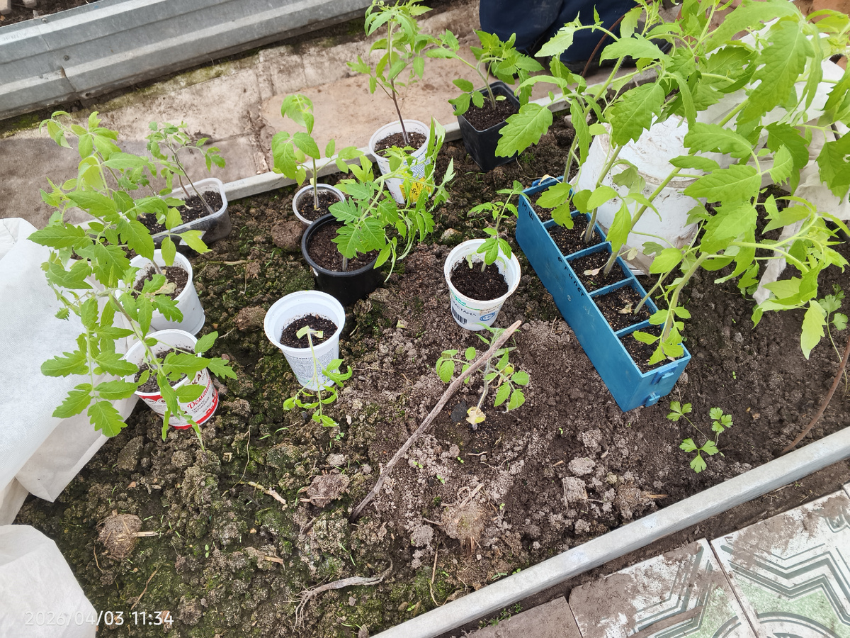 На этом снимке изображены томаты, которые я планировал высадить в теплицу 3 апреля 2026 года. Сейчас на улице тепло, но уже через неделю ожидается похолодание. Важно создать оптимальные условия и подготовиться к возможным капризам погоды.