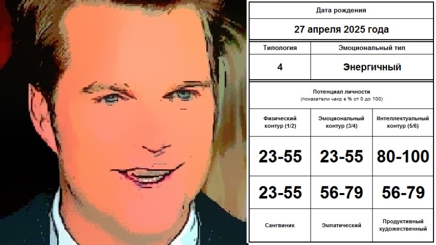 Продуктивный художественный человек - очень творческий тип личности, который способен одинаково хорошо выражать как свои, так и чужие идеи в интенсивном креативном формате (быстро, оригинально и качественно). Хорошие показатели для ведущих, видеоблогеров, организаторов, копирайтеров, маркетологов, для тех, кто работает с детьми.