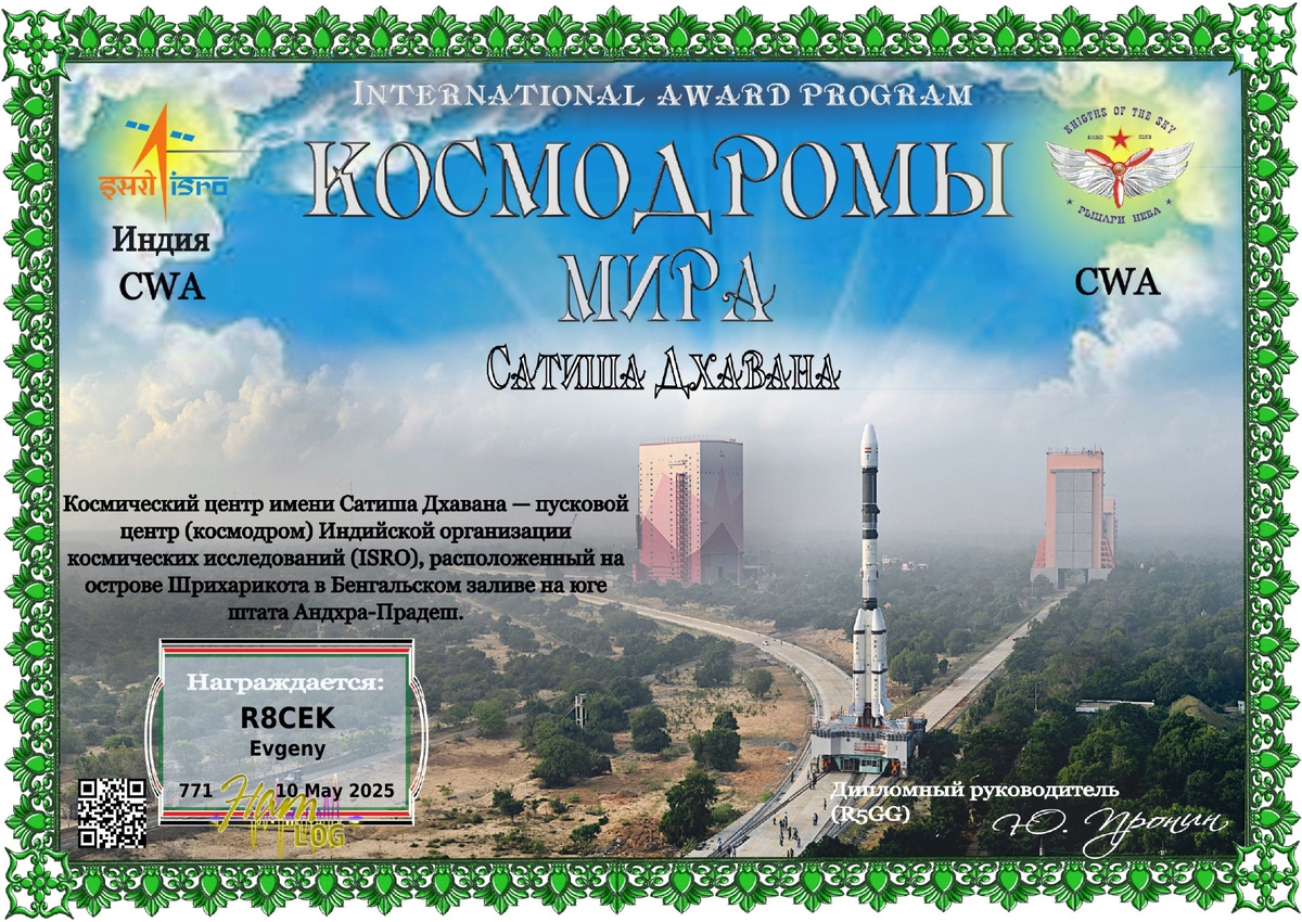 Индийской организации космических исследований (ISRO) расположен на острове Шрихарикота в Бенгальском заливе вблизи юго-восточного побережья Индии, занимает общую площадь около 145 кв. км, имеет автомобильное и железнодорожное сообщение с материком. Близость к экватору, хороший азимутальный коридор, благоприятствующий запускам в восточном направлении, большая необитаемая территория для зоны безопасности делают его идеальным космодромом. Первая стартовая площадка космодрома была построена в 1979 году. Первый
