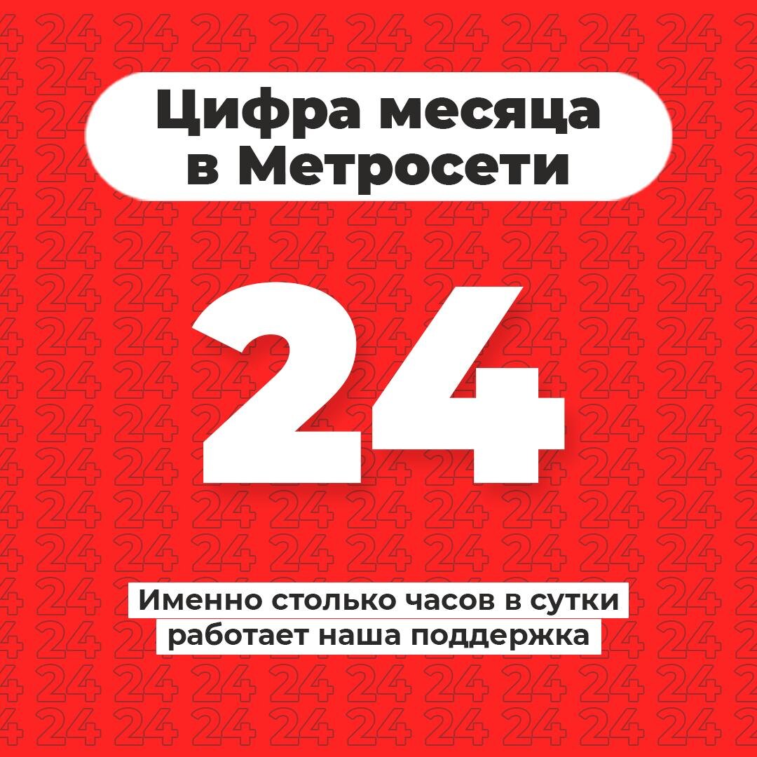 👋 Продолжаем рубрику #цифра_Метросети 🚩🚩 — именно столько часов в сутки мы мониторим сети связи, чтобы предотвращать практически все возможные неисправности до того, как они станут заметны. Если у вас есть вопросы, обращайтесь к нам в любое время! Выбирайте удобный способ связи: ✔️ В личные сообщениях VK: vk.com/ru_metroset ✔️ В Telegram-чате: t.me/Metroset_O... ✔️ В Чате Личного кабинета (справа в нижнем углу): lk.metro-set.ru/limit/ ✔️ Чат на официальном сайте www.metro-set.ru/ (справа в нижнем углу) Команда #метросеть
