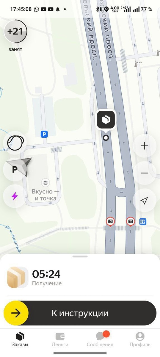 Точка получения на трассе. Клиент самокатер походу