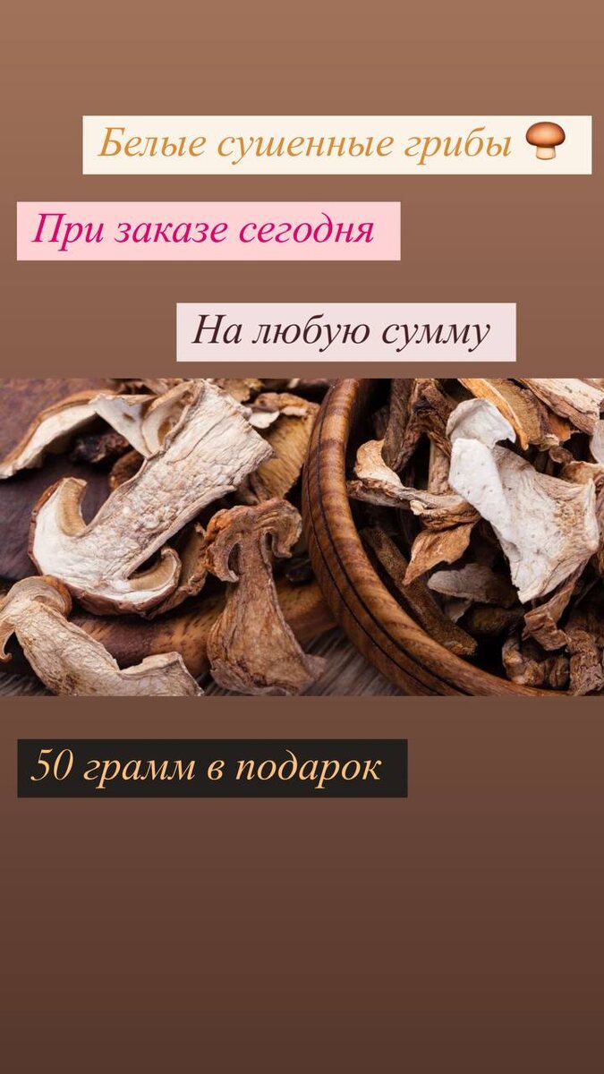 С удовольствие подарю 50 гр сушенных белых Грибов ! Делайте свой заказ сегодня на любую сумму ! Успевайте ! Для подарка всего два раза по 50👍🔥 Доставляем транспортной компанией и почтой России #дарюподарки #сушенныегрибы #сушенныебелыегрибы #лесныегрибы #дикоросы #wild_forest_store