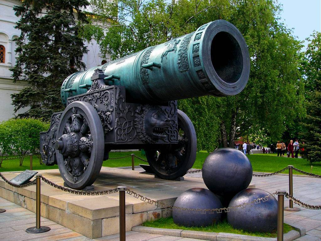 Стоит у нас в стольном граде Москва пушка уникальная, 40 тонн весом и даже ядра у ее лафета сложены. И лафет у нее чудной, весь изукрашенный (да и крепление к лафету... необычное. Токмо... бутафория все это.