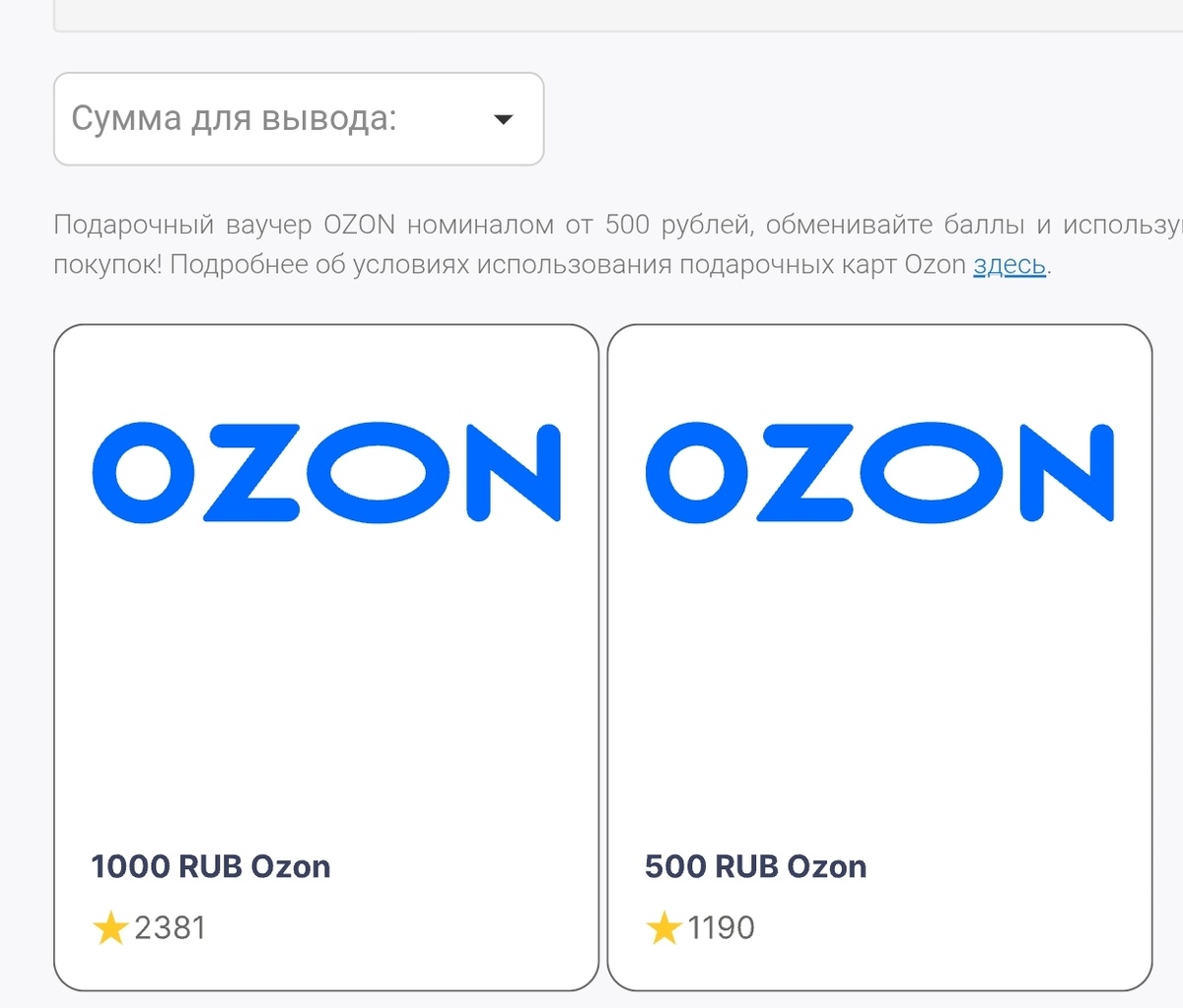 В первом можно копить баллы, а потом за баллы получать сертификаты в озон: