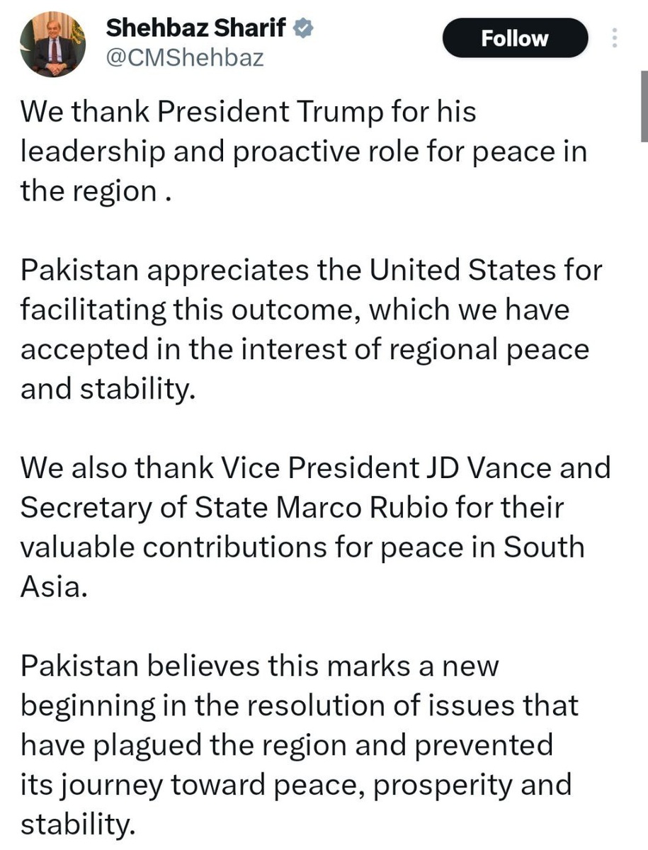 В ответ на пост ❗️RT correspondent Runjhun Sharma in Kashmir, India says reports of ceasefire VIOLATIONS emerging At same time as Pakistan’s PM takes to X to thank Trump for 'proactive role' in ceasefire. #India #Pakistan
