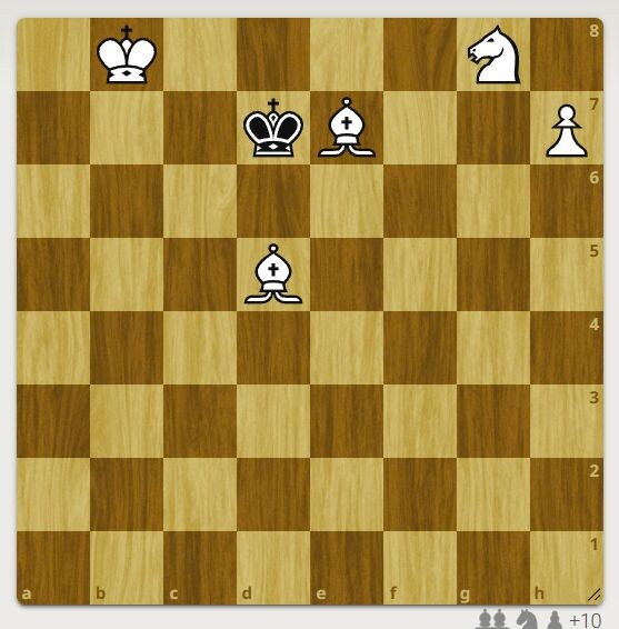 Автор задачи Заходякин Г.Н. У черного короля только один ход на "е8". Но ход белых, белые начинают и ставят мат в 2 хода. Более сложная задача тут >>>>> Решение смотрите в галерее.