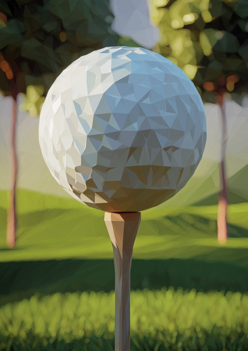 Создано на основе запроса: a close up image of a golf ball on a tee, against a grassy background with trees in a low poly graphic art style.
