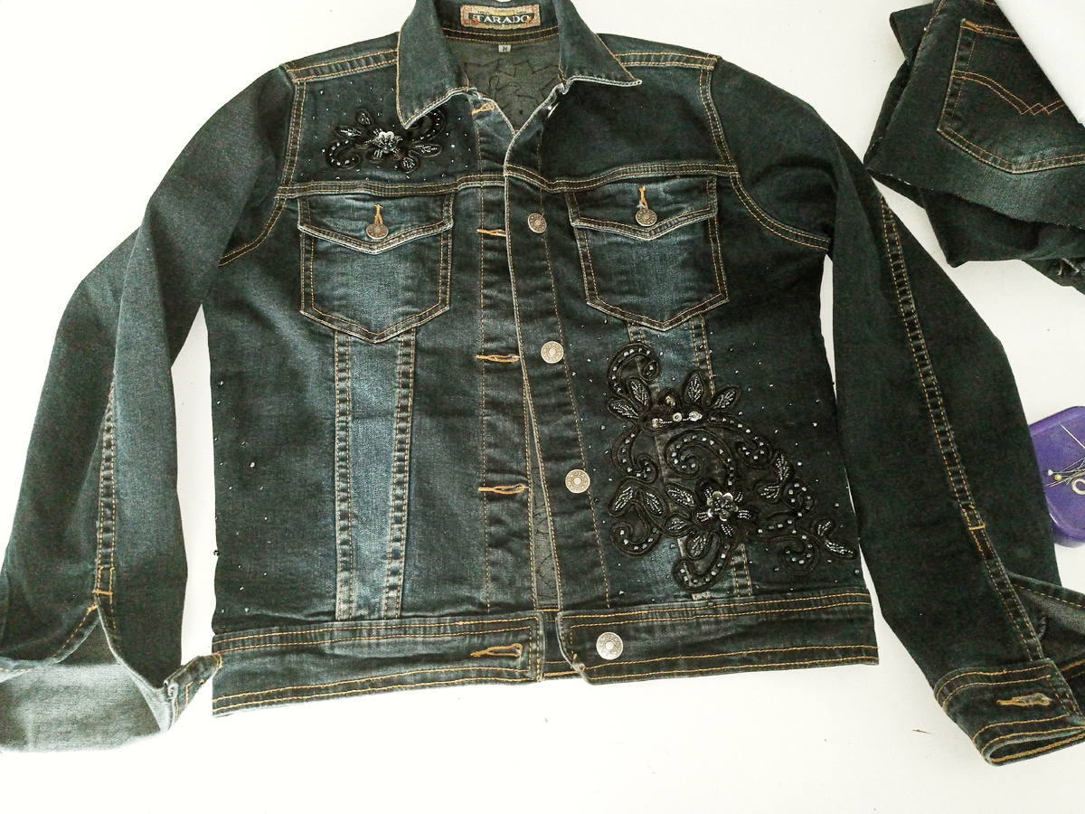 Я уже не раз показывала подобный метод . Запрос довольно частый на эту работу. Курточка от костюма. Дизайн не меняем,только размер увеличиваем. Исходник. Сначала все распарываем. Выкраиваем вставки .у меня боковая 5см +припуски.а рукавная вставка от 5см сужается до 3см. к манжету . Сшиваем все части. И делаем примерку. И тут я офигела! Мало расширила! Рукав нормально ,а туловище мало Благо,что кусок еще остался, хоть выкроить можно новые боковые вставки. Теперь я от 5см под проймой плавной дугой расширяю до 8 к низу. Теперь все снова сшиваю. Восстанавливаю манжеты и пояс. Их тоже нужно расставить и это самая неприятная часть, делать неудобно. Делаю,потом восстанавливаю отстрочку желтой нитью. Нитки то у меня нашлись точно такие,но вот мои машины эти толстые нитки категорически не любят. Кое как прострочила. Слава богу,ремонт закончен! Лопухнулась я конечно знатно,но и на старуху бывает проруха. Пришила назад бусинки,которые пришлось отпороть. Так эта курточка выглядит. Ещё послуж