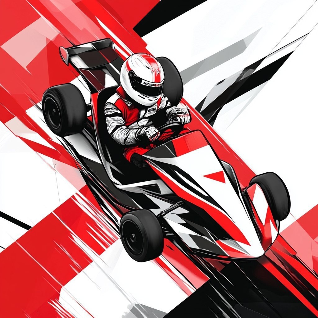 Создано на основе запроса: kart ultrarealistic, geometric racing lines, dynamic graphic, red white and little black