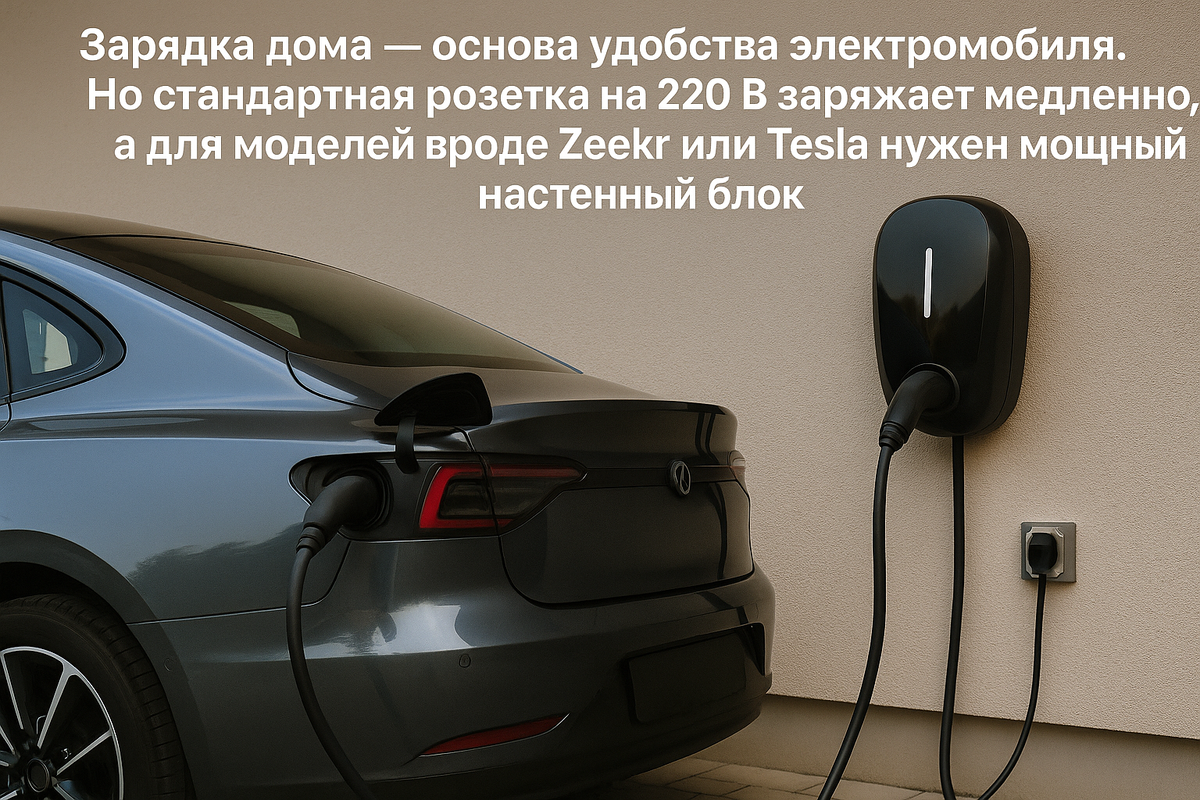 Зарядка дома — основа удобства электромобиля. Но стандартная розетка на 220 В заряжает медленно, а для моделей вроде Zeekr или Tesla нужен мощный настенный блок. Цена такого устройства начинается от 50 тысяч рублей, а с установкой (новая проводка, отдельная линия, заземление) легко доходит до 150–200 тысяч. Если дом старый, готовьтесь к модернизации электросети или согласованиям с управляющей компанией.