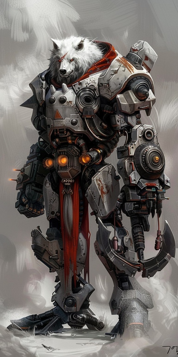 Создано на основе запроса: D&D stylized mech with a white werewolf inside, left hand is a fist, right hand is a massive claw. Use this image as inspiration: --- Автоперевод: D & D Stylized Mech с белым оборотнем внутри, левая рука - кулак, правая рука - массивный когтя. Как тебе генерация? 🤔 https://dzen.ru/id/65c0c65c86e4f837c27b24d7 #ИИ #AI #нейросеть #midjourney #art