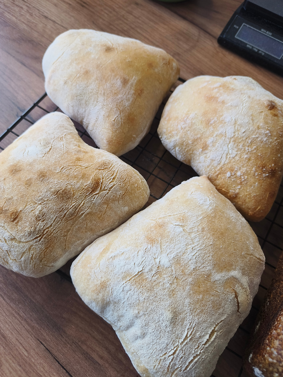 🍀История хлеба чиабатта 🍀 Чиабатта — известный итальянский хлеб с хрустящей корочкой и пористым, воздушным мякишем. Его история относительно современна и тесно связана с кулинарной конкуренцией середины XX века. 🍀 Происхождение🍀 Чиабатта была создана в 1982 году итальянским пекарем Арнальдо Каваллари из региона Венето. Поводом для её изобретения стало растущее увлечение итальянцев французскими багетами. Каваллари решил создать собственный хлеб, который сохранил бы аутентичность итальянских традиций, но мог конкурировать с французской выпечкой. Название «чиабатта» (от итал. ciabatta — «тапочка» или «шлёпанец») отражает характерную плоскую и вытянутую форму буханки, напоминающую стоптанную обувь. 🍀 Особенности рецептуры 🍀 - Тесто: Высокая гидратация (большое количество воды) делает тесто липким и сложным в работе. Для формирования используют растягивание, а не классическое замешивание. - Ингредиенты: Пшеничная мука, вода, соль, дрожжи, иногда оливковое масло. Часто при