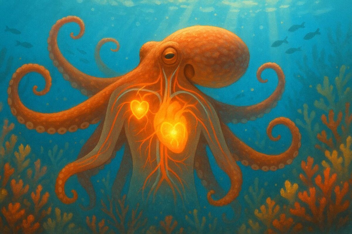 🐙❤️ Интересный факт У осьминога три сердца — и каждое с важной миссией! 🫀🫀🫀 Да, это правда: у осьминога действительно три сердца! Два из них перекачивают кровь через жабры, насыщая её кислородом 🌊 А третье — главное — разгоняет обогащённую кровь по всему телу осьминога 🌀 Кстати, когда осьминог плавает активно, основное сердце может временно остановиться, экономя энергию! 😮 ✨ Удивительная анатомия для удивительного существа. А ты бы хотел иметь три сердца — для любви, спорта и отдыха? 😉👇 #интересныйфакт