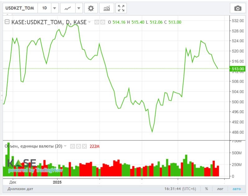 Нацвалюта открыла текущую неделю укреплением: по итогам торгов понедельника курс валютной пары USD/KZT закрепился на отметке 513,50 тенге за доллар (-1,48 тенге). При этом объем торгов по паре USD/KZT вырос до 221,8 млн долларов (+40,2 млн). Внешний фон складывался противоречиво, так как укрепление рубля могло быть полностью нивелировано падением цен на нефть (-1,5%). Что касается внутренних факторов, то возможно, что предложение на локальном валютном рынке превосходит спрос за счет стабильной продажи экспортной выручки, а также регулярных продаж инвалюты Нацбанком.