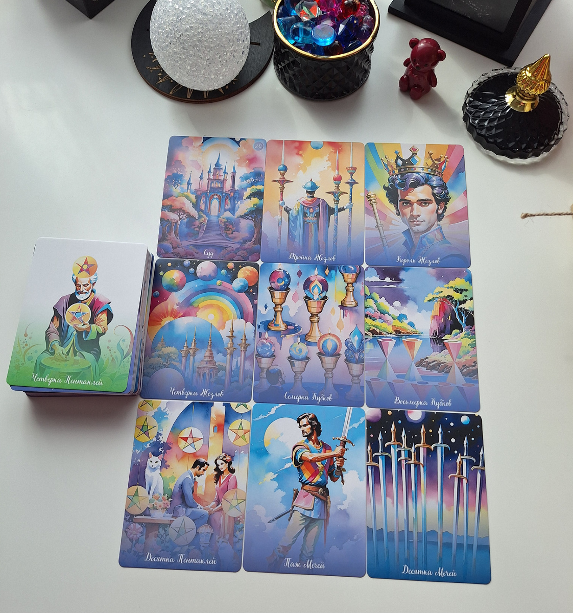 Известно, что карты Таро говорят загадками, но мы попробуем их расшифровать!💜 Представьте себе: ваш любимый прислал вам послание, но не простое, а из аркана Суд.👀 Он вас судит?🫦 Нет, он просто хочет сказать, что готов обсудить ваше будущее вместе.💯 А как насчет 3 Жезлов?✨ Это значит, что ваш партнер полон амбиций и планов.🔥 Король Жезлов подсказывает, что он готов взять на себя ответственность и вести вас за собой. 🔝👑 Но не забывайте о 4 Жезлах — это карта праздника и счастья, возможно, вас ждет сюрприз!🎉 А 7 Кубков?🌈 Мечты и фантазии, которые могут стать реальностью, если вы оба этого захотите.🥰 8 Кубков намекает, что возможно пришло время оставить прошлое позади и двигаться вперед.🤡🥳 10 Пентаклей — это знак стабильности и изобилия. 🫶 Паж Мечей говорит о новых идеях и любопытстве,👋 но 10 Мечей предупреждает о возможных трудностях.😑 Не бойтесь, ведь 4 Пентаклей напоминает, что все в ваших руках!❤️❤️ Итак, ваше послание от любимого — это микс планов, надежд и немног