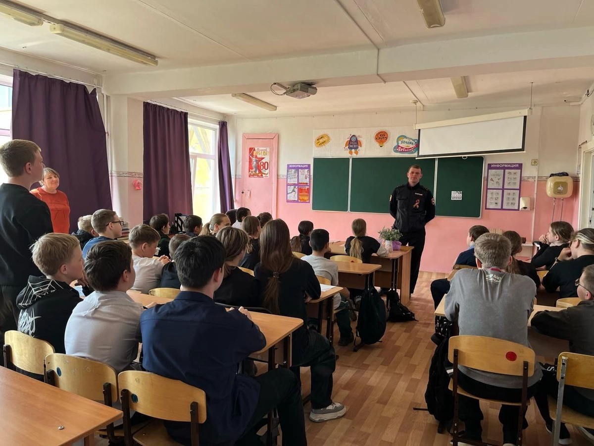 В разговоре с учениками полицейский рассказал о том, как не стать жертвой преступления: были подняты вопросы безопасности жизни и здоровья, а также ответственности за сохранность личных вещей.