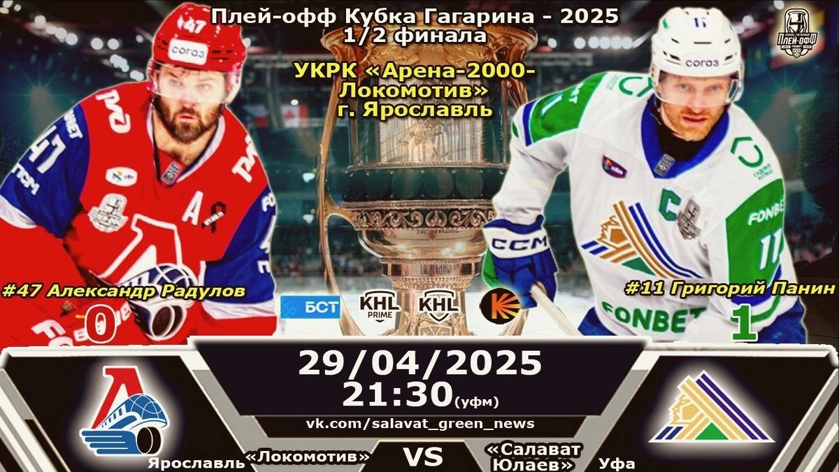Бөгөн плей-офтың ярымфиналында "Локомотив" "Салауат Юлаев"ты ҡабул итә. Билдәле хоккей эксперттары "Локомотив"ҡа өҫтөнлөк бирһә лә, беҙ яратҡан командабыҙға ышанабыҙ һәм бары тик еңеү көтәбеҙ!