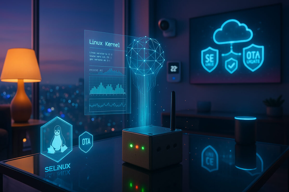 Во-первых, минимизация ядра сокращает поверхность атаки. Меньше кода — меньше уязвимостей. Во-вторых, такие механизмы, как SELinux и AppArmor, позволяют жестко ограничить доступ приложений к ресурсам. Например, приложение на смарт-лампочке может быть изолировано так, что даже в случае взлома оно не сможет повлиять на другие процессы. Добавьте к этому криптографическую подпись прошивок и загрузчиков, таких как U-Boot, и вы получите систему, где каждый компонент проверяется на подлинность.