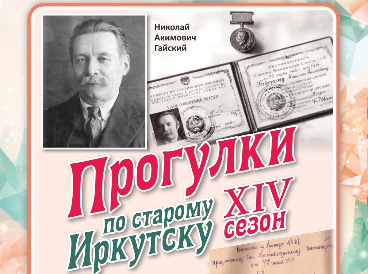 Первая прогулка 14-го сезона состоится 6 мая 2025 года и будет посвящена предстоящему 80-летию Победы, а ее героем станет выдающийся советский микробиолог, эпидемиолог, иммунолог, доктор медицинских наук, профессор Иркутского государственного медицинского института, создатель туляремийной вакцины Николай Акимович Гайский.