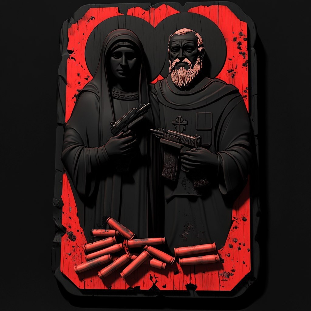 Создано на основе запроса: Orthodox homemade religious icons, prison bread crumb, standing cartridges, on a black background --- Автоперевод: Православные домашние религиозные иконы, крючка из тюрьмы, стоящие патроны, на черном фоне Классно получилось? 🤔 https://dzen.ru/id/65c0c65c86e4f837c27b24d7 #ИИ #AI #нейросеть #midjourney #art