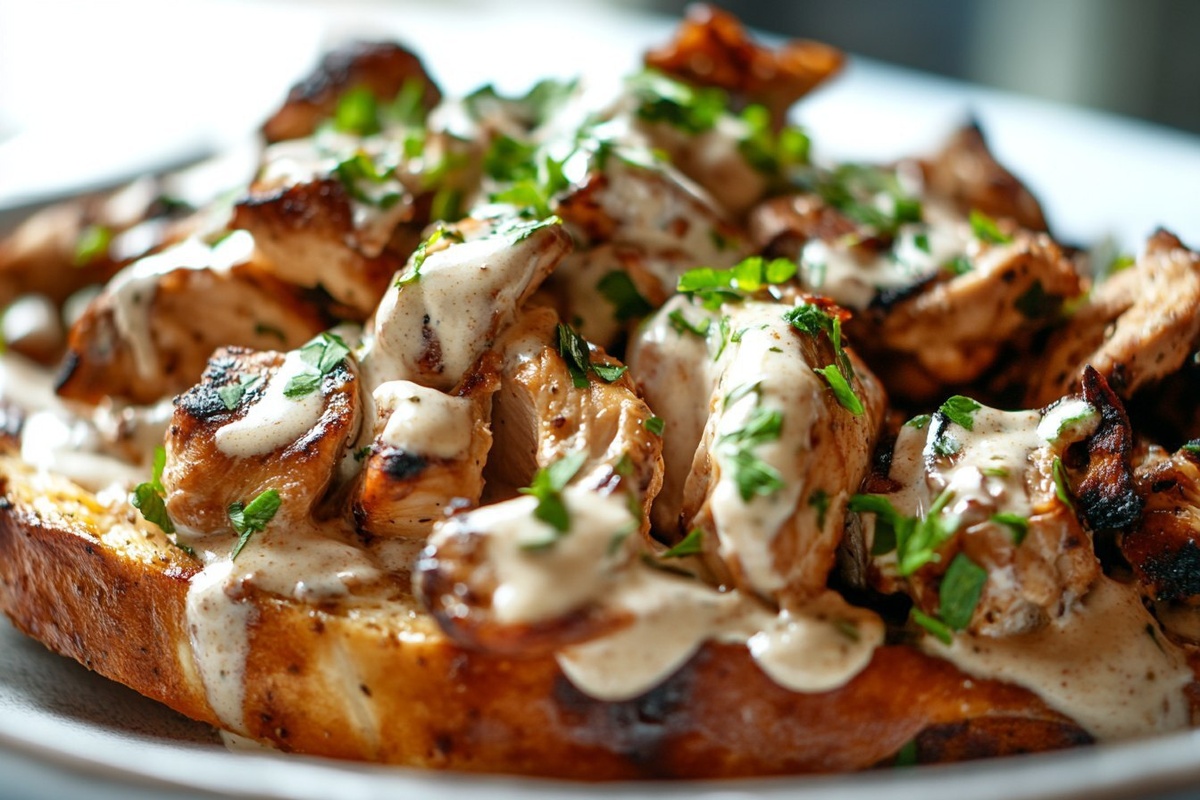 Создано на основе запроса: Title: Chicken Shawarma with Creamy Garlic Sauce | STYLE: Close-up Shot right view | EMOTION: realistic as