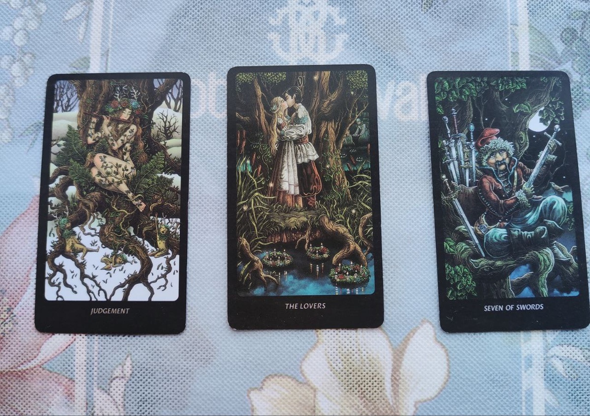 🌟✨ Карта Дня: Суд, Влюбленные и Семёрка Мечей — Путешествие по Миру Таро Славянских Легенд