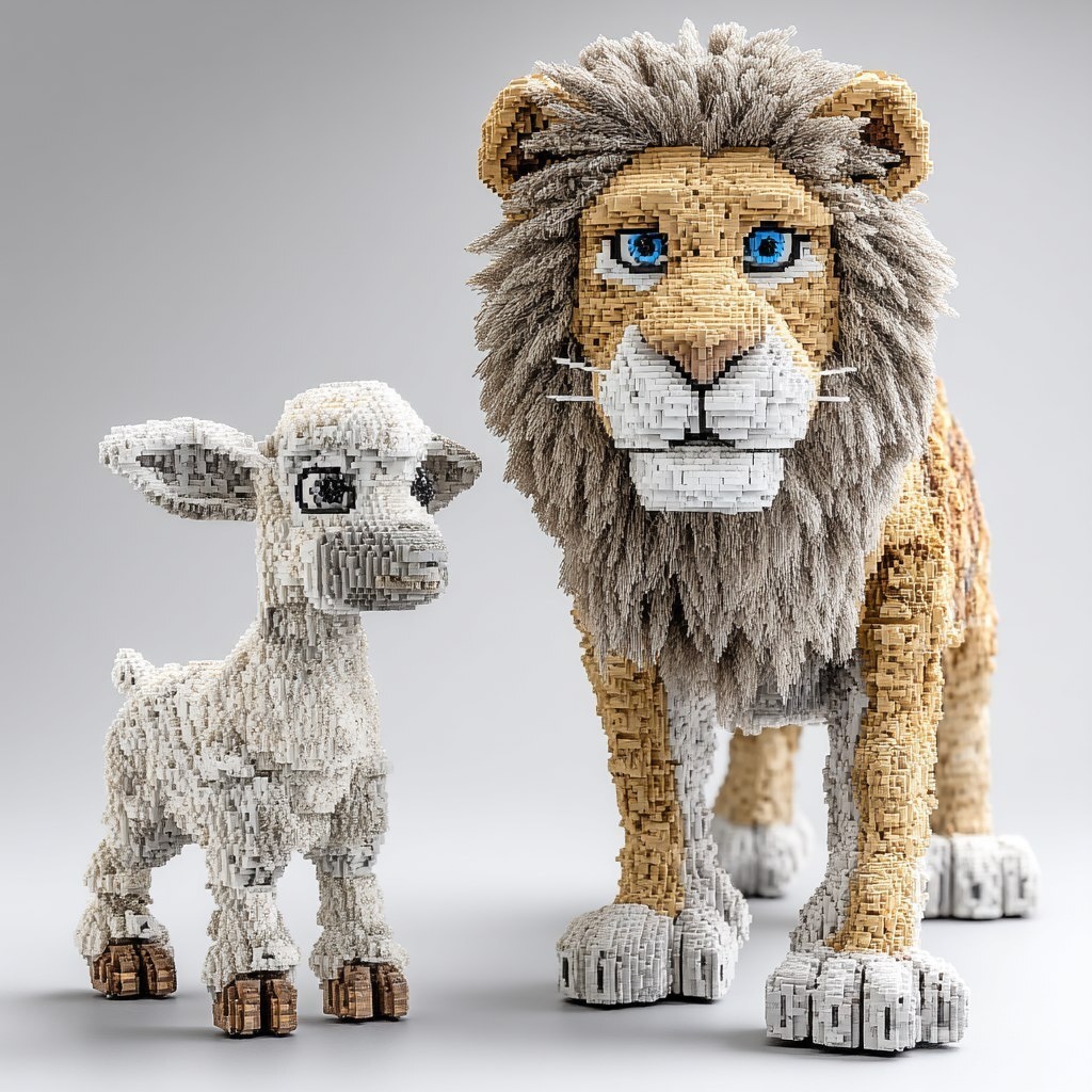 Создано на основе запроса: The Lion and the Lamb voxelized