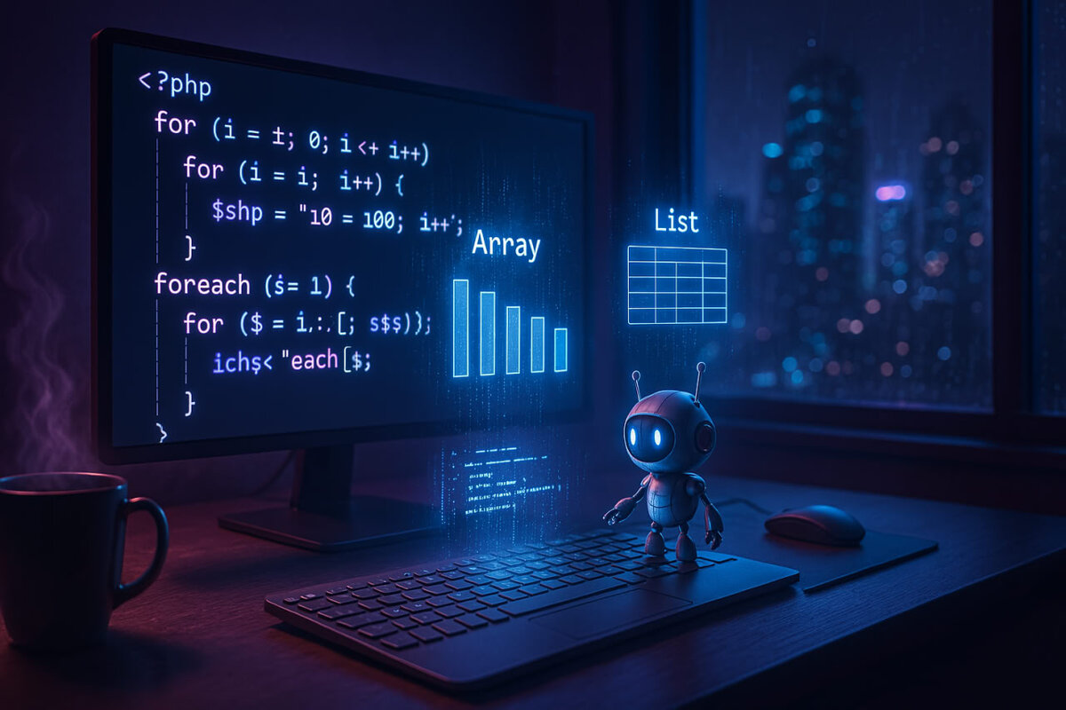 В мире веб-разработки умение эффективно использовать циклические конструкции — настоящий козырь в рукаве программиста. Трудно представить современный сайт или веб-приложение, где не требовалось бы многократное выполнение определённых операций: будь то вывод товаров из каталога, обработка данных пользователей или генерация отчётов. Давайте погрузимся в увлекательный мир циклов PHP и раскроем все секреты использования конструкций for и foreach.