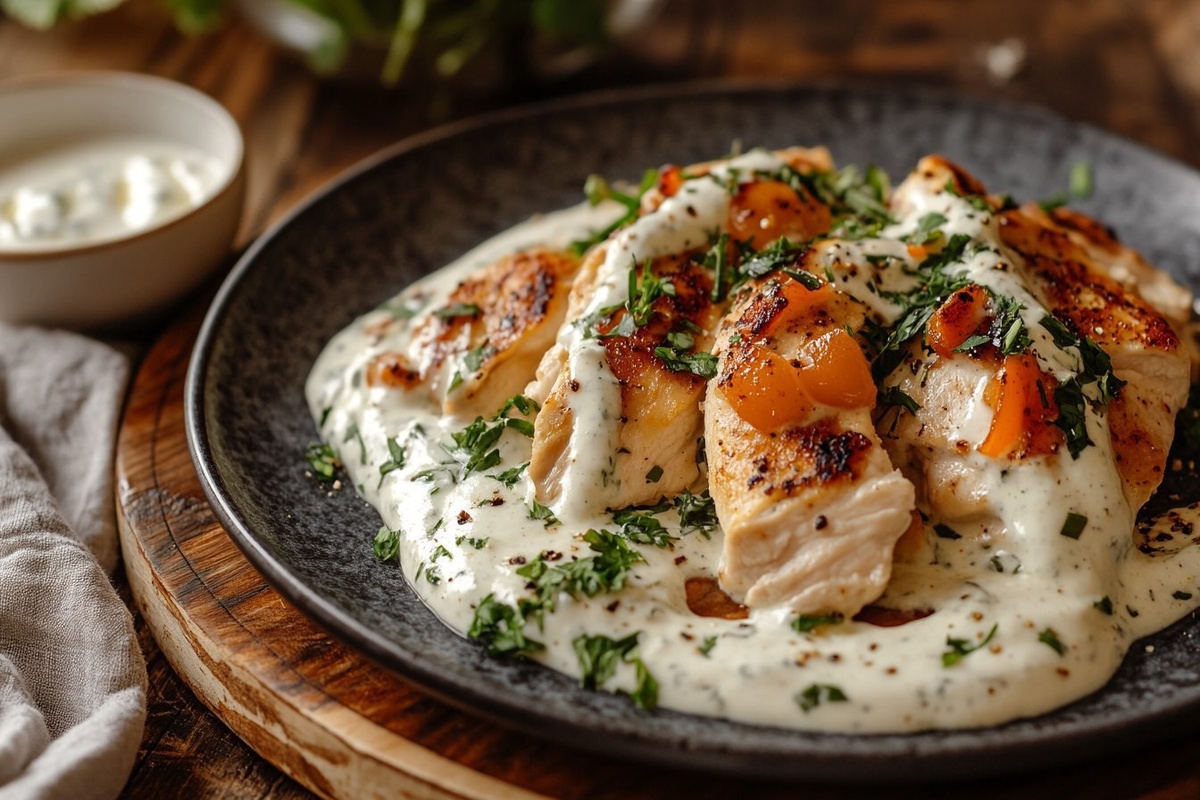 Создано на основе запроса: Title: Chicken Shawarma with Creamy Garlic Sauce | STYLE: Close-up Shot right view | EMOTION: realistic as possible | SCENE: KEYWORD | TAGS: High-end food photography, clear composition, mouth-watering, indulgent, gourmet, cuisine, recipe | CAMERA: Nikon Z7 | FOCAL LENGHT: soft direction light | PRODUCTION : food stylist | TIME : daytime | LOCATION TYPE : kitchen near windows,