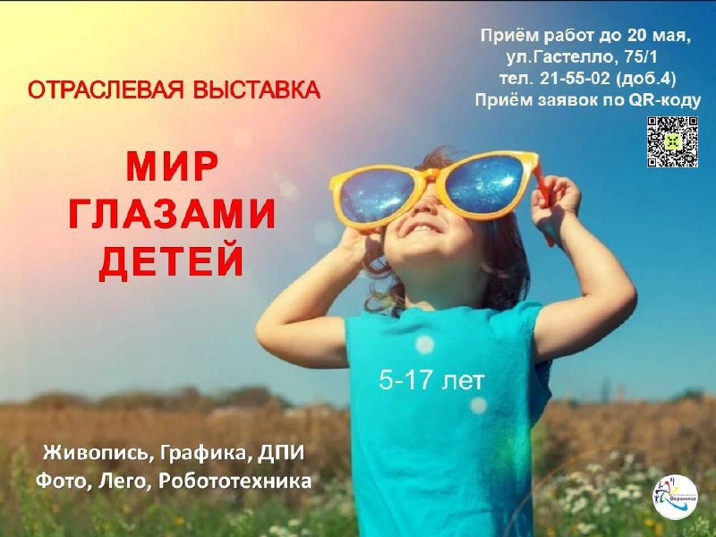 «Мир глазами детей» увидят тюменцы Детско-юношеский центр «Вероника» приглашает тюменцев в возрасте от 5 до 17 лет принять участие в ежегодной отраслевой выставке декоративно-прикладного творчества и изобразительного искусства «Мир глазами детей», которая проходит с 2 мая по 6 июня. Посетить экспозицию и насладиться шедеврами смогут все желающие в Тюменской областной научной библиотеке имени Дмитрия Ивановича Менделеева (ул. Орджоникидзе, 59) с 26 мая по 6 июня. Подробнее