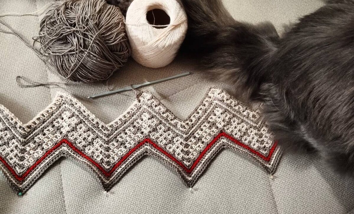 Мозаичный зигзаг. Новости наших чатов Лана из чата «Мозаичный зигзаг» начала плед🔥 Лана: «Начала плед. Зигзаг впервые. Спонтанно, после того, как нашла забытые пакет с пряжей "отдать в добрые руки". Дива и Софт(вискоза). Крючок 3, почти 500 петель 🙈 в ширину. Когда снег весной, то нужна медитация😂 Авантюра, конечно, но оочень нравится !» Мозаичный зигзаг — чат и схемы: https://t.me/+_k9i-nh3FiI3MDNi