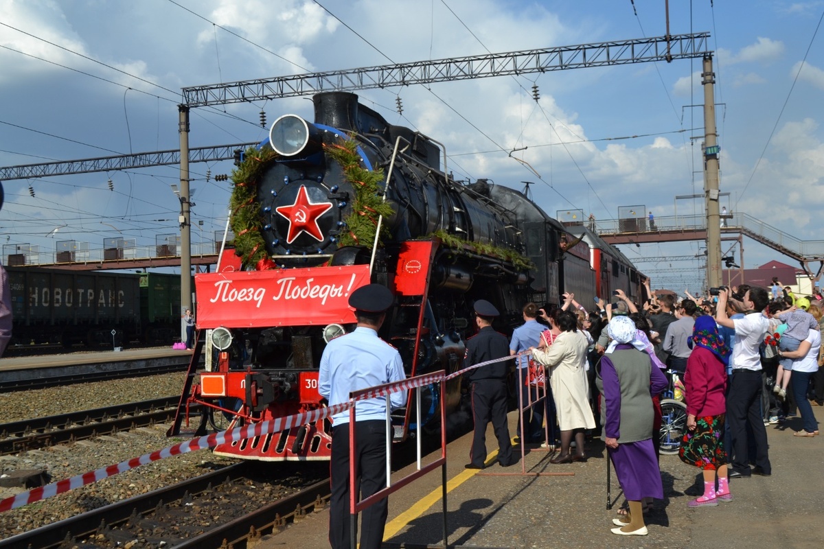 - 16:40 – прибытие ретро-состава «Поезд Победы», выставка техники военных лет, торжественный митинг, концерт творческих коллективов, работа полевой кухни.